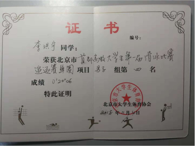 在体育部张嘉飞老师带领下BB贝博派4名队员首次参加比赛,17级信息与电子学院李洪宇和王云川、17级计算机学院陈家胤三名同学参加单圈计时赛分别取得第5名、9名和17名成绩,17级设计与艺术学院缪徐涛同学参加两圈追逐赛取得第11名成绩,为BB贝博今后参加首都高校冰上项目比赛积累了宝贵赛事经验,对学校冰上项目俱乐部组建、冰雪校内赛事组织具有积极推动作用。