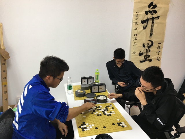 五子棋决赛冠军争夺,数学与统计学院对战自动化学院,出人意料的是,数学与统计学院的女棋手在开局几分钟后便率先完成比赛,取得胜利,给了自动化学院其余两位选手很大的压力。之后经过十几分钟的激战,自动化最终以1:2负于数学与统计学院,获得亚军,数学与统计学院荣获冠军。