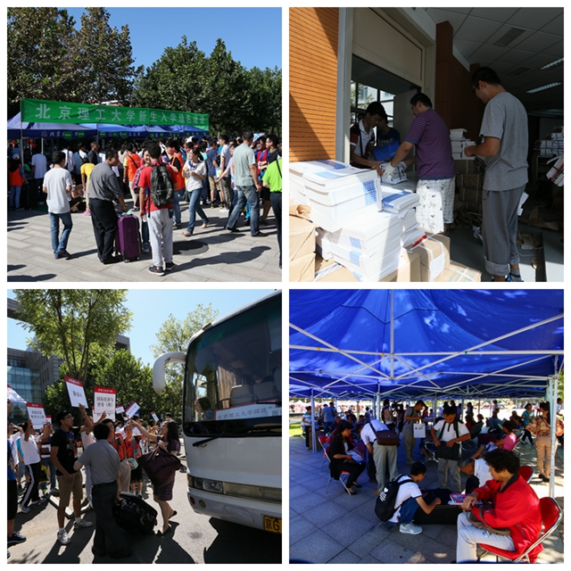 3日早六点开始,迎新工作正式启动,新生和家长陆续到校。主迎新站设置在良乡校区行政楼广场,各迎新学院按照专业设置了迎新站,并组织安排高年级学生担任迎新志愿者,在校内为报到新生提供服务。