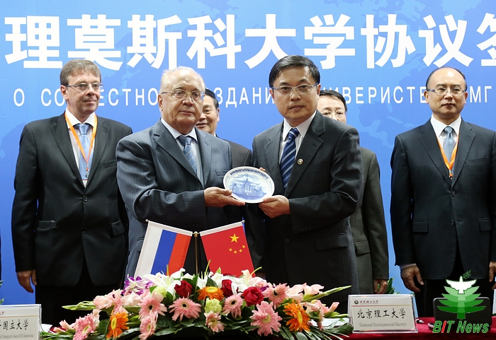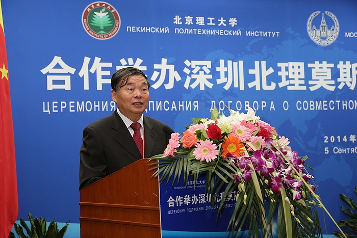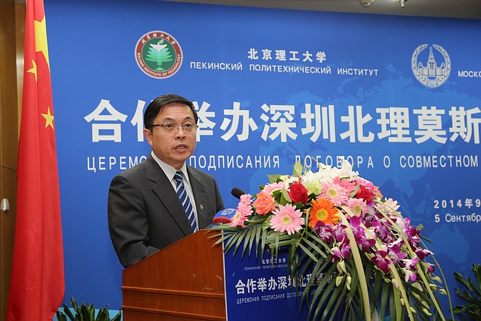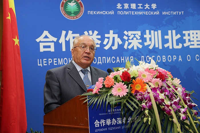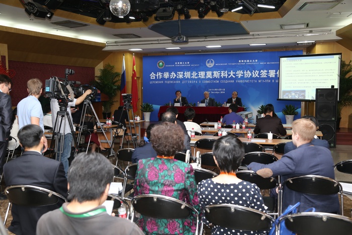 2014年9月5日上午,BB贝博艾弗森官方网站与莫斯科国立罗蒙诺索夫大学(以下简称莫斯科国立大学)合作举办深圳北理莫斯科大学协议签字仪式在京举行。BB贝博艾弗森官方网站校长胡海岩院士和莫斯科国立大学校长维克多•萨多夫尼奇院士代表两校共同签署合作协议。BB贝博艾弗森官方网站胡海岩校长、莫斯科国立大学维克多•萨多夫尼奇校长、工业和信息化部杨学山副部长、深圳市人民政府许勤市长先后在签字仪式上致辞。俄罗斯驻中国大使馆一等秘书谢尔盖•列别杰夫、教育部国际合作与交流司副司长于继海、工业和信息化部人事教育司副司长高东升、国际合作司副巡视员文勇、深圳市人民政府副市长吴以环、副秘书长黄国强、莫斯科国立大学副校长谢尔盖•沙赫莱、副校长尼古拉•西蒙、BB贝博艾弗森官方网站副校长赵长禄、周立伟院士、汪顺亭院士等各方代表共100余人出席了签字仪式。