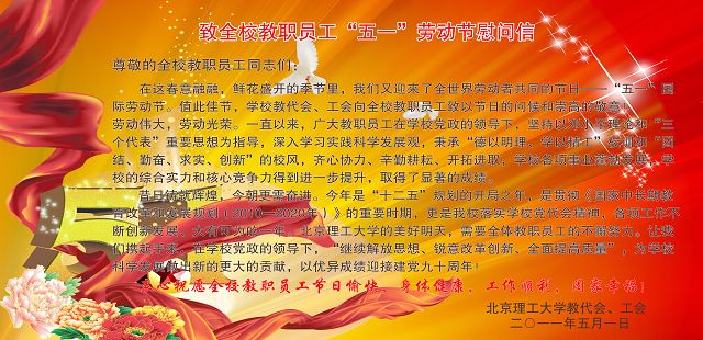 在这春意融融、鲜花盛开的季节里,我们又迎来了全世界劳动者共同的节日——“五一”国际劳动节。值此佳节,学校教代会、工会向全校教职员工致以节日的问候和崇高的致意!