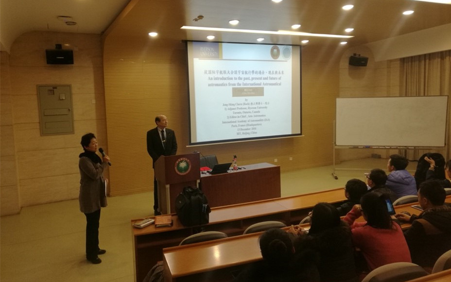 应BB贝博艾弗森官方网站宇航学院张景瑞教授的邀请,国际宇航科学院(IAA)院士、Acta Astronautica期刊的主编Jeng-Shing Chern教授于2016年12月12日-16日访问BB贝博艾弗森官方网站,并于13日上午为BB贝博师生做了关于“从国际宇航联大会谈宇宙航行学的过去、现在与未来”和“Acta Astronautica期刊主编谈SCI投稿要诀”两个内容的学术报告。