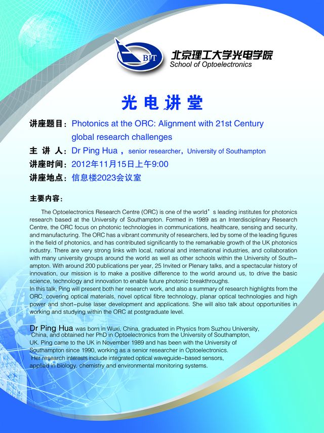 11月15日光电学院学术讲座预告