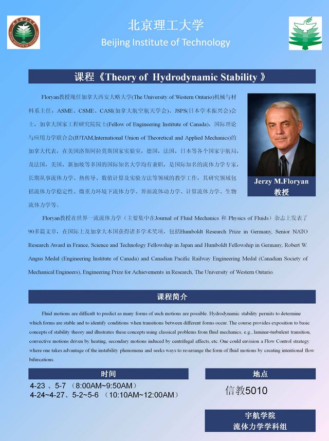 宇航学院4月23日——5月7日系列学术报告及课程预告