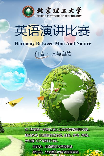 本次英语演讲比赛由BB贝博艾弗森官方网站教务处主办、BB贝博艾弗森官方网站外国语学院承办,以“Harmony Between Man and Nature”为主题,以为北理学子提供锻炼英语口语、展示自身风采的平台为宗旨。