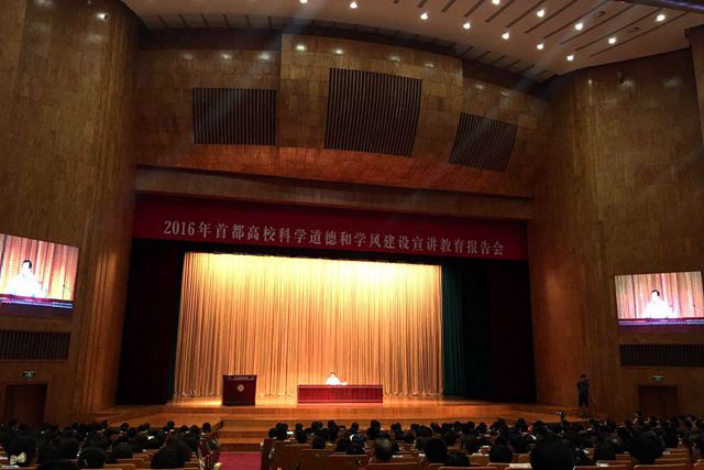 9月20日,北理工组织100名2016级研究生参加了2016年首都高校科学道德和学风建设宣讲教育报告会。报告会由全国科学道德和学风建设宣讲教育领导小组、北京市科学道德和学风建设宣讲教育领导小组、北京大学共同举办。中国工程院副院长、第四军医大学西京消化病医院院长樊代明院士作宣讲报告。中国科协党组成员、书记处书记王春法代表主办单位致辞,报告会由北京市科协党组书记、常务副主席马林主持。