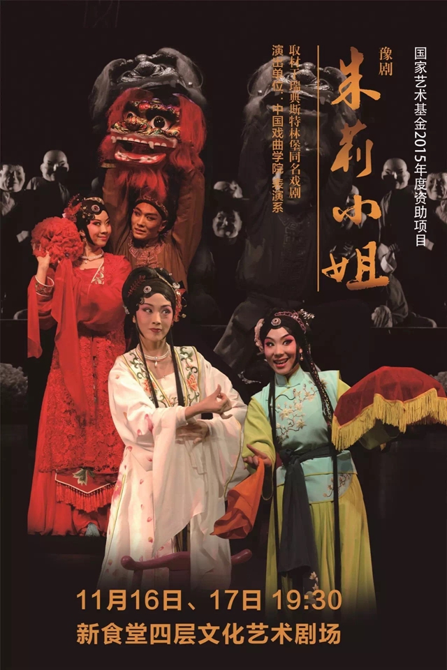 2015年国家艺术基金支持项目,豫剧《朱丽小姐》,将于2016年11月16日、17日在BB贝博演出,敬请关注。