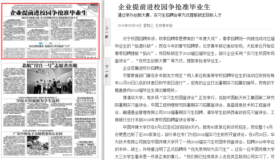 【北京青年报】北理工教师就企业校园招聘发表观点