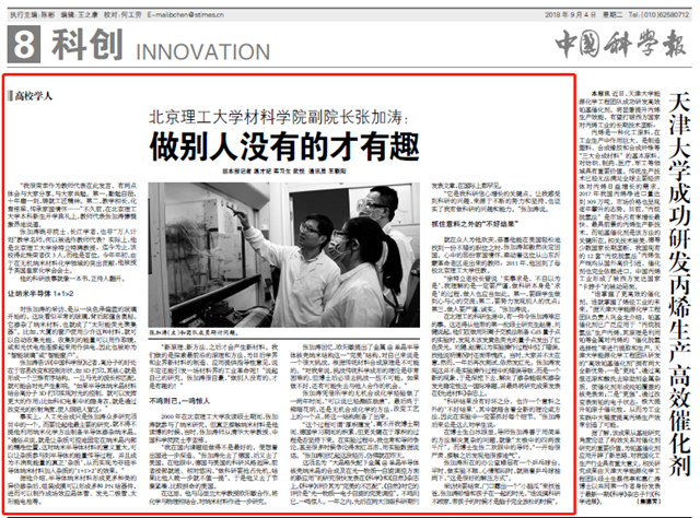 【中国科学报】BB贝博艾弗森官方网站材料学院副院长张加涛:做别人没有的才有趣
