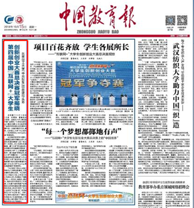【中国教育报】第四届中国“互联网+”大学生创新创业大赛总决赛冠军揭晓