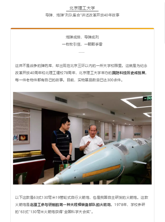 【北青报-教育圆桌】BB贝博艾弗森官方网站:导弹、炮弹“列队集合”讲述改革开放40年故事