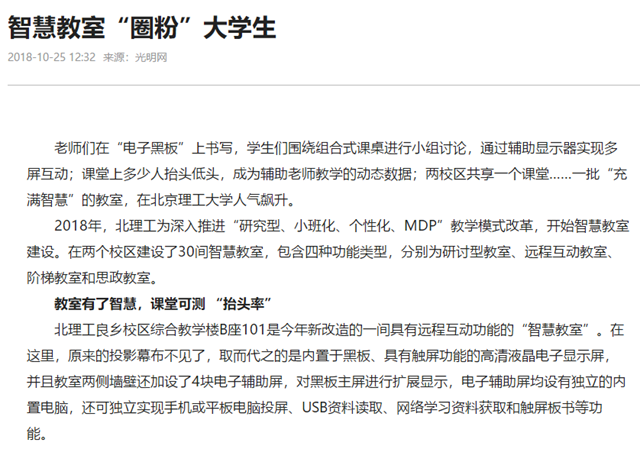 新技术正在改变着课堂,提升学生们的知识学习效能和老师们的教学效能,建设智慧教室是北理工构建校园“宜学生态”的一项有效举措,但建成并不是目标,高效的运行和使用才是重中之重。