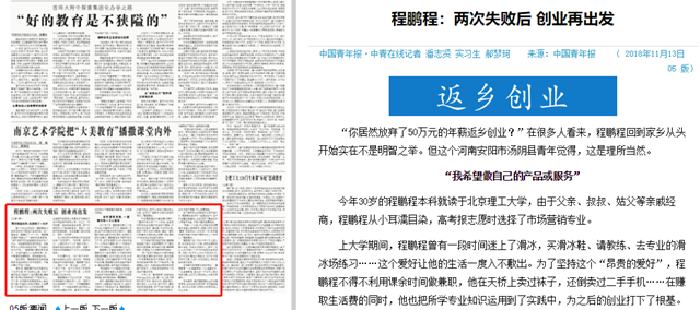 【中国青年报】北理工校友程鹏程:两次失败后 创业再出发