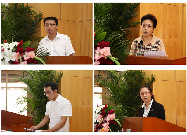 校学生会副主席萧沃滢珏(右下)代表学校学生会、研究生会发出倡议:号召全校同学学习冯玖江同学见义勇为、舍己救人的高贵品质,学习他高远的志向和恬美的心境。在“德以明理,学以精工”校训的指引下,在冯玖江同学见义勇为事迹的鼓舞下,从我做起,从点滴小事做起,勤奋学习、深入实践、关爱他人、心系社会,传承见义勇为的精神,凝聚浩然正气,把奉献社会作为不懈追求的优良品质;努力增强社会公德心和社会责任感,在建设社会主义和谐社会的历史征程中贡献力量。