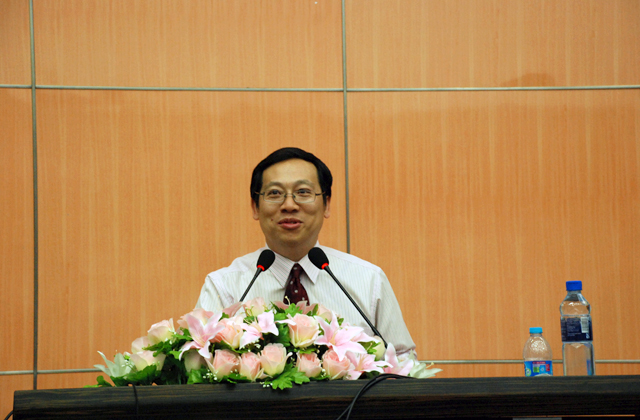 昌增益教授首先从自己的经验和实践出发,向同学们介绍了英语学习的重要性。接着,昌教授从怎样勾画自己的生活目标与价值,如何养成健康的人格,如何从学习态度与习惯出发使自己的生活技能完美化,怎样努力成为某一领域的专家等四个方面分享自己总结的“对大学教育的思考”。最后,昌教授介绍了拥有国际化眼光的重要性以及获得国际化视野的几个要点和方法。