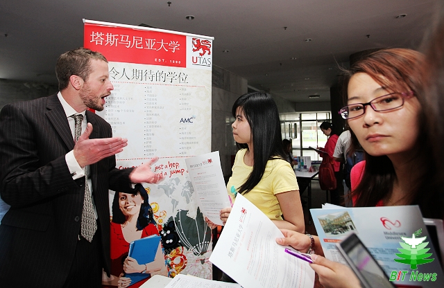 会后,参会的国内外院校还在BB贝博中心教学楼一层大厅举行了与学生的交流会,就留学中的一些问题给予了现场解答。
