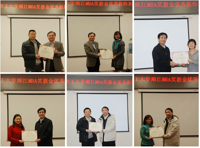 2011年11月28日,管理与经济学院召开了2011年度顺江MBA奖教金优秀教师表彰会,为优秀授课教师与优秀论文指导教师颁奖。管理与经济学院院长魏一鸣、书记李金林、副院长朱东华、获奖教师、MBA教育中心老师和学员代表出席了会议。会议由MBA教育中心副主任赵玉焕主持。