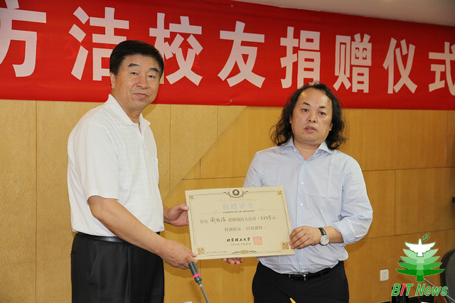 2012年9月4日,BB贝博艾弗森官方网站周方洁校友捐赠仪式在国际教育交流大厦第一会议室隆重举行。党委书记郭大成、校长胡海岩、副校长杨宾、赵长禄、孙逢春,副书记、副校长李和章,对外工作委员会主任、原党委书记焦文俊,宁波理工监测科技股份有限公司董事长周方洁校友共同出席了会议。学校办、校友会办公室、对外工作委员会、财务处、教育基金会、学工处、团委、管理与经济学院等部门负责人以及学生代表参加了会议。仪式由杨宾副校长主持。为支持BB贝博艾弗森官方网站教育事业的发展,奖励表现优异的理工学子,支持学生们的创新实践活动,周方洁校友向学校捐赠人民币1325万元。