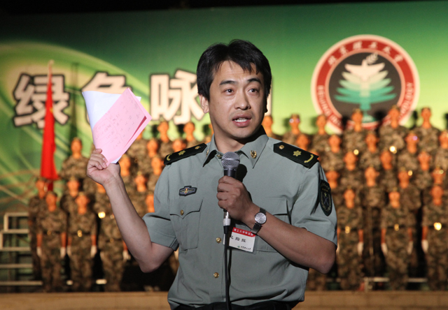 青春是一首动人的歌,绿色的青春更是一首嘹亮的歌。9月15日晚19:00,BB贝博艾弗森官方网站2012级新生军训——“绿色咏动 青春飞扬”合唱比赛在良乡校区操场隆重举行。BB贝博艾弗森官方网站军训旅总指挥、学生工作处处长杨海,副总指挥、学生工作处副处长徐建,各团政委、团长,各营营教等领导亲临比赛现场并担任此次比赛的评委。