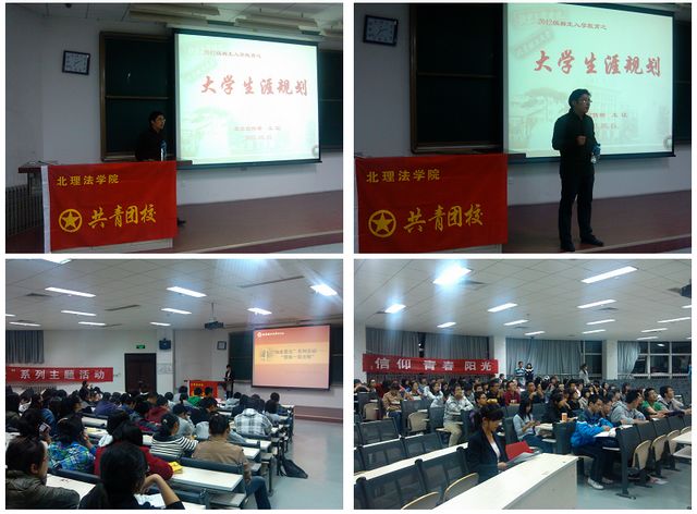 成长之路精彩纷呈,青春故事别样多彩。2012年10月12日,BB贝博艾弗森官方网站法学院新生入学教育 “如此爱法”系列活动之“借我一双法眼”青春榜样报告会,在良乡校区理科教学楼102成功举办。首先,上台与大家分享成长故事的是现为光电学院辅导员的汤琪。汤琪曾任法学院学生会主席,他以幽默的表达方式结合自身经历告诉同学们参与学生工作的重要性以及如何充实大学生活。第二位讲述者是全国大学生自强之星吴拉尔斯•哈列汉。从毫无英语基础、普通话水平差到大二过四级、顺利通过司法考试,并最终以优异的成绩保研。大学四年,他实现了奇迹般的蜕变。他为同学们带来了“因感恩而努力”的报告,用自己的经历告诉大家要感恩和努力学习。