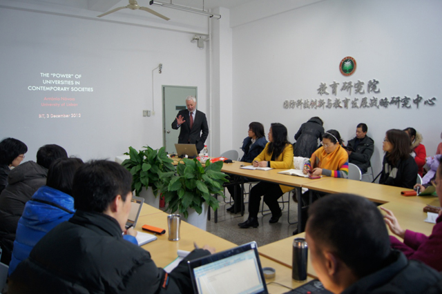 2012年12月5日,应BB贝博艾弗森官方网站党委书记郭大成教授的邀请,葡萄牙里斯本大学校长António Nóvoa教授访问BB贝博。在中心教学楼405会议室,António Nóvoa校长为我院师生做了一场题为“The power of universities in contemporary societies”的精彩讲座。讲座由教育研究院常务副院长何海燕教授主持,教育研究院庞海芍书记,校国际合作交流合作处高珊副处长,国际交流合作处项目官员彭淑老师,及教育研究院师生代表等共计40余人参与讲座。
