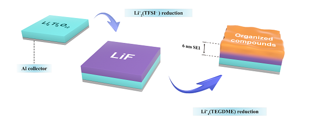 通常,理想的水系SEI膜应具有均匀的厚度、低溶解度、较好的柔韧性以及有效分离活性物质与电解质的能力。醚类溶剂,特别是TEGDME,由于具有较高的介电常数,可以实现电解质锂盐阴阳离子对的有效分离,提高锂盐在电解液中的浓度,从而获得较高的电导率。同时,醚类溶剂形成的SEI膜具有薄、致密、结构均匀等优点,因此可以作为有效的水系电解质溶剂组分之一,提高电池的稳定性。