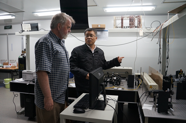 参观之前,量子调控及应用研究中心负责人张向东教授向Bruce W. Muirhead教授介绍了物理实验楼的使用情况以及各实验室的运行状况。