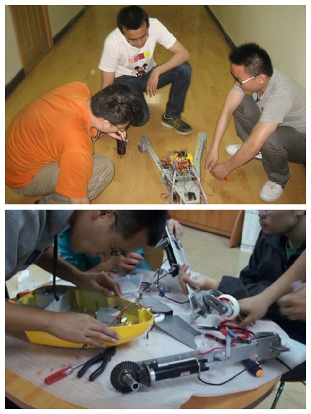 整个团队由博士生、研究生、本科生等各个不同年级的同学组成,一般是由博士生带领着研究生或者本科生进行研究制作。在两个基础研究项目——“蛙板机器人”和“智能车”的过程中有很多令人难忘的感人瞬间,每当队员们回忆起的时候,昨天一起奋斗的场景都仿佛历历在目。