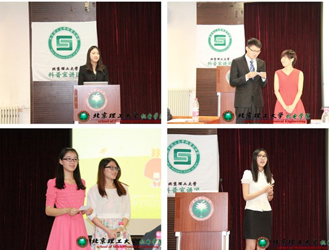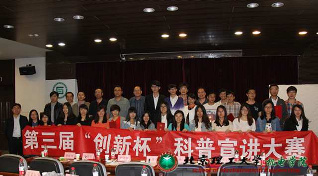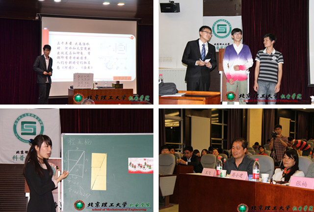 2014年4月26日晚,BB贝博艾弗森官方网站第三届“创新杯”科普宣讲大赛总决赛在研究生楼101报告厅隆重举行。出席本次比赛的嘉宾有教育部中央教育科学研究所科技教育中心研究员汪耆年老师,团市委事业部部长张楠老师,北京市青少年学生活动中心活动策划部副部长蒋小建老师,北京市教委学生活动管理中心活动策划张铮老师,宣武区科技馆特聘老师李建雄老师,北京市海淀区寄读学校科技教师王飞老师,校党委副书记、副校长李和章教授,学生工作处处长郭彦懿老师,校团委书记蔺伟老师,研工部副部长马晓宁老师,校团委副书记苟曼丽老师,机电学院党委副书记、副院长杨瑞伟,机械与车辆学院党委副书记、副院长范文辉老师,以及来自BB贝博艾弗森官方网站各个学院的参赛选手和观众近200人参加。