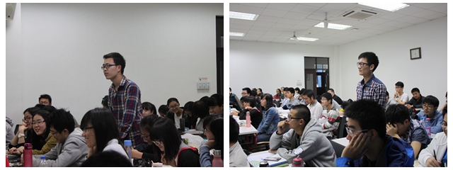 最后,讲座进行到提问环节,学生们纷纷提出了自己的问题,有关于林教授的演讲的,有关于大学学习方法的,也有今后出国问题的等等。林教授对每一个问题都做了详细的解答,回答中体现出了一位科学家的严谨与热情。比如,学生们问到开始准备出国的最好时机。林教授建议,最好从大一开始,坚持学好外语,多接触国外的教育理念,这将对出国有很大帮助。有的学生也给林教授出了难题,问道如何在物质与金钱之间选择。林教授答道,他的演讲已经告诉同学们应该怎么做了。整个环节中同学们不时报以热烈的掌声。