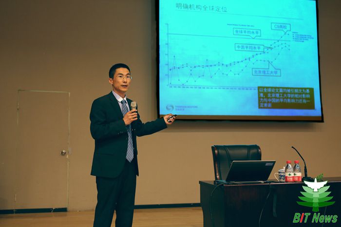 报告会上,王利从以下几个方面展开讲解:一是简要介绍了科研绩效评价和学科分析的权威数据。二是详细阐述了BB贝博艾弗森官方网站过去10年科技论文的产出情况。从各学科论文产出数量及占机构总体的百分比、国际合作论文占总体论文比例、相对于全球各学科平均影响力、一级学科发展趋势等角度对BB贝博科研论文产出情况进行了分析。三是运用最权威数据将BB贝博艾弗森官方网站与相关高等院校进行多角度对比分析,详细解读了BB贝博目前具备的优势及存在的差距。