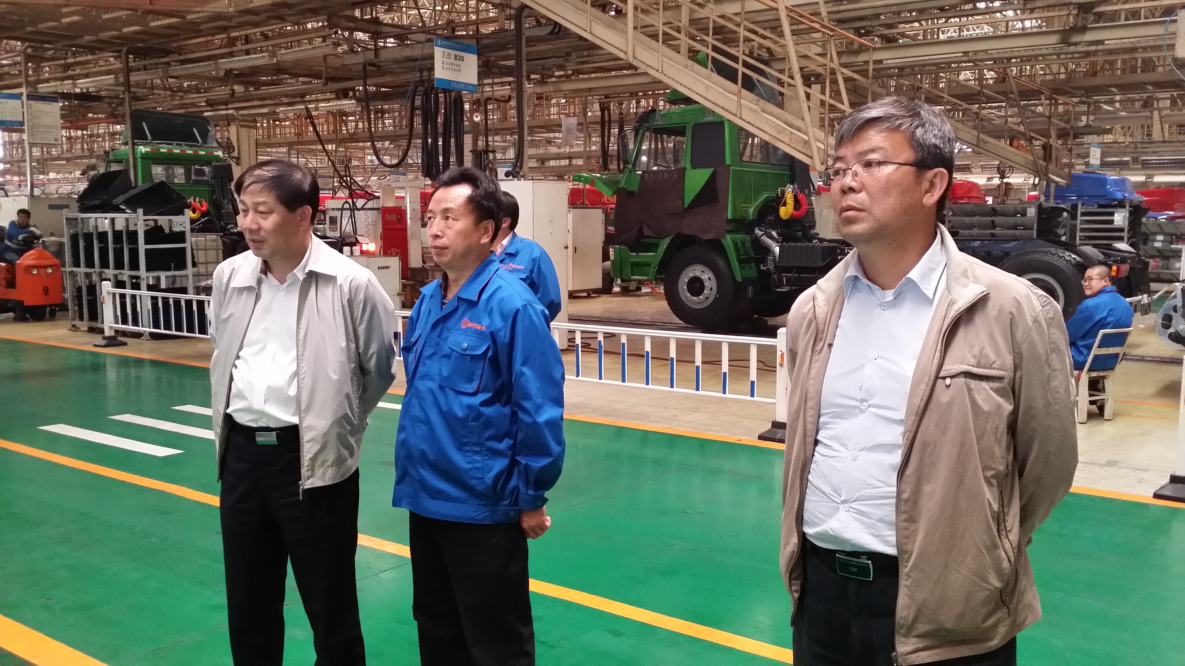 随后,赵平副校长一行又赶赴陕西汽车集团有限责任公司,进行了参观、调研与座谈等活动。集团副总王小峰先生陪同参观了整车车间,并向各位老师介绍了目前集团的发展情况,特别是新款重卡的特性、生产、销售等情况。