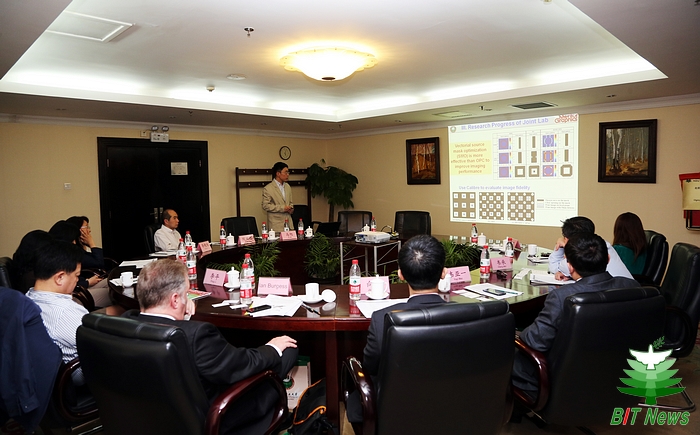 光电联合实验室负责人李艳秋教授委托马旭教授汇报了前期双方合作协议的规定的教学和研究工作进展。2013年9月,光电联合实验室获得了明导电子美国总部的项目资助,产出了国际领先的科研成果,有力地推动了双方实质性合作。同时双方还在研究生联合培养等方面取得了实质性进展。目前,明导电子公司为光电学院的3名研究生提供了教学实践的实习岗位。经过双方的共同努力,光电联合实验室各项工作进展顺利,逐步深化了双方在产、学、研、用各方面的合作。随后,郝群教授和范明辉总经理为光电联合实验室正式成立举行了揭牌仪式。会后,来宾到7号教学楼参观了光电联合实验室,再次深入交流了产、学、研、用的合作,对实验室的管理、教学和科研给予充分肯定。