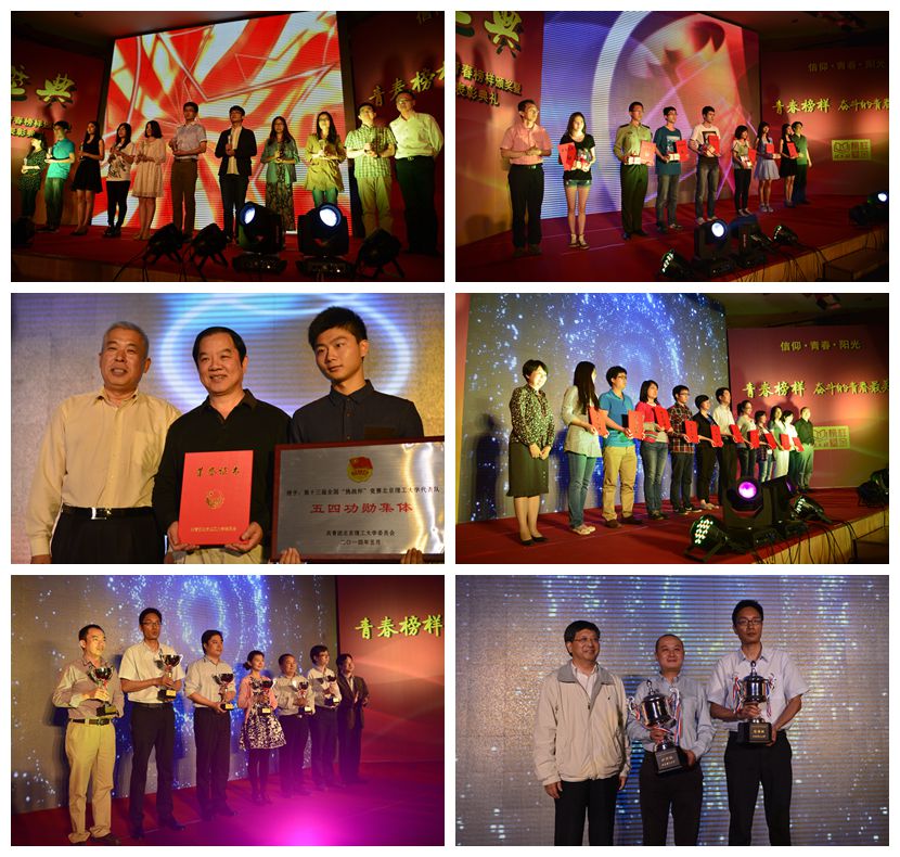 为表彰先进集体和个人,传播青春榜样正能量,5月16日晚,2014年“青年盛典”——第三届“青春北理”年度榜样人物(团队)暨共青团系统五四评优表彰颁奖典礼在7号楼报告厅隆重举行。