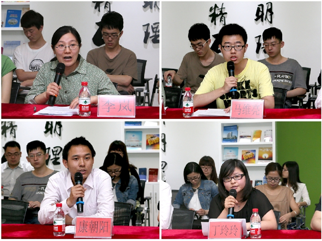 接着,到生源地、基层就业的4位学生代表进行了发言。2006届生命学院毕业生李岚讲述了在北京顺义区当大学生村官获得的成长和锻炼;2014届自动化学院毕业生马维亮分享了毅然决定去西部支教的心路历程;2010届机电学院毕业生康朝阳讲述了回到家乡郑州的中电集团27所工作后所拥有的良好发展机遇;2014届管理与经济学院毕业生丁玲玲分享了放弃北京工作机会、签约中航工业洪都集团以服务家乡建设的所思所想。他们的发言热情洋溢、朴实动人,全场不断响起热烈的掌声。