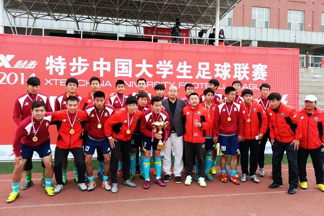 2013-2014赛季“特步”中国大学生足球联赛北方赛区决赛于5月11—18日在东北师范大学举行,BB贝博足球队克服中甲和大学生联赛双线作战的困难,在九天打了八场比赛的情况下,勇夺“特步”中国大学生足球联赛北方赛区冠军,从而取得参加全国总决赛的资格。