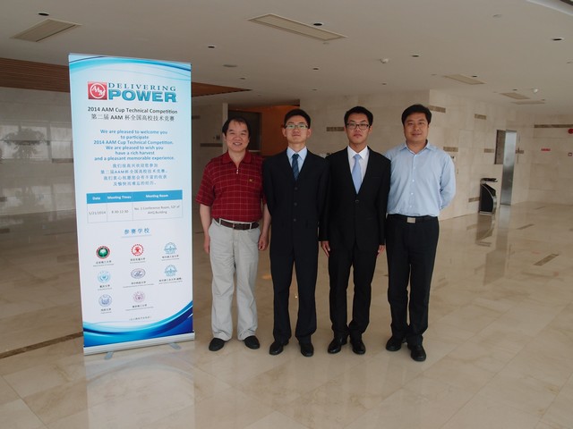 2013年机械与车辆学院曾组队参加了第一届AAM杯竞赛,取得了第二名的好成绩。今年,在学院领导的大力支持下,在学院科协的积极组织下,早在二月份就开始筹备该项赛事,通过校内选拔和初赛,最终派出由机电学院罗庆生教授担任指导老师、机械与车辆学院陈永全、张志鹏担任队员的代表队,并由机械与车辆学院副书记副院长范文辉带队参加了此次竞赛。5月20日晚上,罗庆生、范文辉两位老师与参赛队员们进行了长时间的讨论,确定了最终的设计方案、演讲策略、答辩技巧、细节预演等,消除了队员们的紧张情绪,为第二天的完美答辩和最终获奖做好了充分的准备。