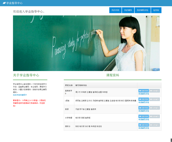 在教务处、学生工作处、基础教育学院和网络服务中心的通力合作下,学业指导中心于2013年12月成立并开始试运行,2014年4月正式投入使用。现有学业咨询室7间,学业沙龙讨论室1间,位于博雅园学生公寓一层东侧。现开设辅导课程5门,分别是高等数学B、C语言、微积分、大学物理和英语。招聘学业辅导教师29人,其中学生27人,教师2人。并不定期开展学习沙龙、课程串讲等活动。