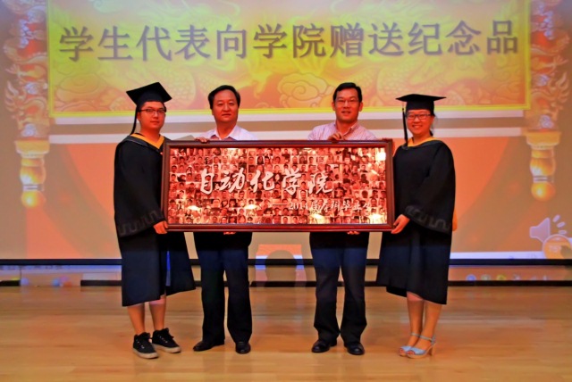 随后,副院长廖晓钟教授宣读了《北京市优秀毕业生名单及表彰决定》、《BB贝博艾弗森官方网站优秀毕业生名单及表彰决定》及授予学士学位的决定。院长兼党委书记王军政教授宣读了授予硕士、博士学位的决定。接下来,2014届毕业生向学院赠送了一幅承载着所有毕业生笑脸的照片作为纪念品,希望将毕业生们最美好的回忆留在北理,留在自动化学院。