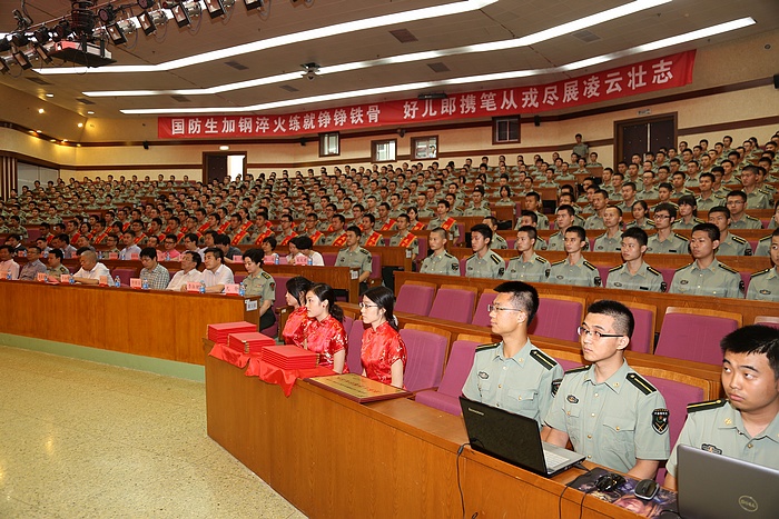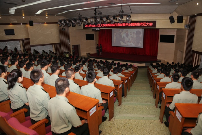 本次会议以播放国防生在校生活、优秀毕业国防生寄语、优秀国防生代表获奖感言的视频为主。会议通过这样的形式旨在营造用先进引领,用典型带动,人人学习模范、争当榜样的浓厚氛围,进一步提高榜样的影响力和队伍的凝聚力,激励所有国防生刻苦学习科学文化知识,努力训练过硬军事素质,为今后的军旅生涯打下坚实的基础!