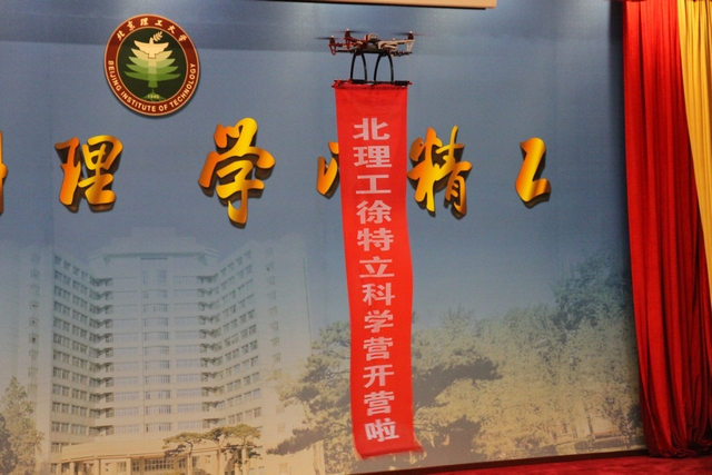 在热烈的掌声中,王越院士宣布BB贝博艾弗森官方网站徐特立科学营正式开营。于此同时,BB贝博艾弗森官方网站宇航学院航模队设计制作的四轴飞行器,携着“BB贝博艾弗森官方网站徐特立科学营开营啦”字样的条幅盘旋在主席台的上方,为科学营助力,为营员们喝彩,携带着全体营员们的科技梦想自由飞翔。