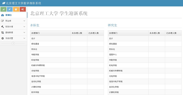 “网上预报到”板块则以利用信息化技术平台、实现新生入学报到的“双向”数字化、人性化服务为建设目的,实现以人为本的工作理念。“双向”即,一为校内各迎新相关部门提供数字化、网络化工作平台,在学生入学前最大限度的完成信息采集、处理和发布,大幅度提升工作效率;二为面向新生有效传递入学报到信息,最大限度帮助新生顺利报到,做好开学准备。