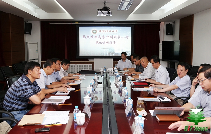 高东升副司长简要介绍了此次调研工作的背景和目的,充分肯定了北理工发展建设取得的成绩。他在讲话中提到,北理工拥有深厚的军工文化底蕴,良好的科研学术氛围,特色鲜明的军工类优势学科,在国防科技领域占有非常重要的地位。高东升副司长结合 “十三五”规划,对高校的未来发展提出了几点建议:部属高校要适应新军事变革趋势,坚持自身军工特色,积极培育新兴交叉学科,构建新型军工特色学科体系;要开拓创新,探索研究生招生、培养新模式;要服务国民经济建设需要,为工业化和信息化培养更多优秀人才;要深化综合改革,在巩固现有成果的基础上取得更大的突破。