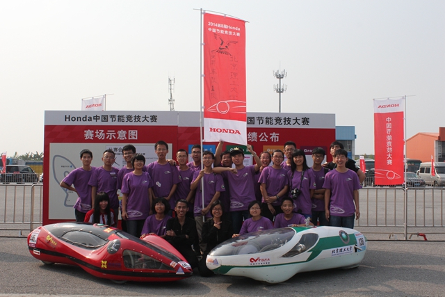 2014年10月18—19日,第八届中国节能竞技大赛在广州国际赛车场如期举办。来自全国70多所高校及部分企业、媒体,共计151支车队参加了此次比赛。节能车俱乐部派出燃油车队和电动车队共计22名学生参加了比赛,参赛学生来自机械与车辆学院、信息学院和设计学院。最终电动赛车获得了电动组高校第一名的好成绩,燃油车发生故障而遗憾退赛。