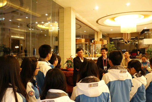随后,李和章副校长一行到亚奥国际酒店慰问机场交通组的BB贝博志愿者。李校长亲切地询问了志愿者的工作安排与工作情况,并勉励同学:“现在中国逐渐承办越来越多的国际型活动,承担越来越多的国际责任,发挥更大的影响力。对于大家来说,这次的APEC是一个机会,是一个展示中国形象、展示北京大学生风貌的机会,同学们要好好珍惜,好好加油。”在对大家工作给予高度赞扬与肯定的基础上,希望大家在接下来的一段时间内认真工作,合理休息,并注意自身安全。