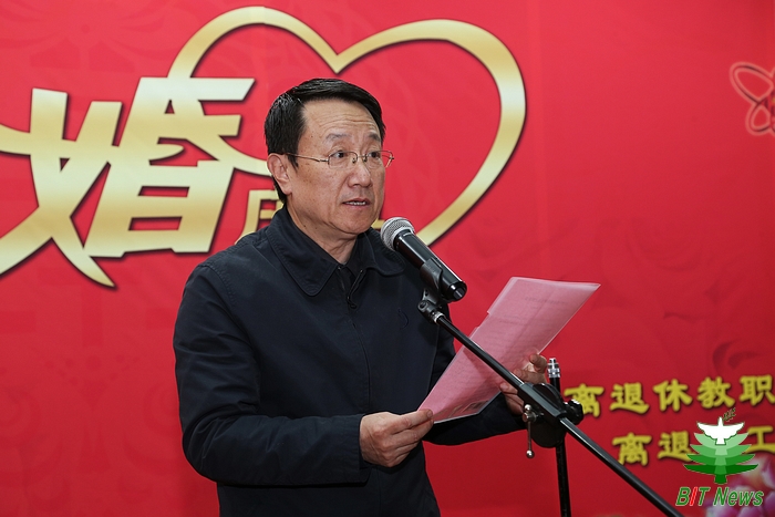 金婚伉俪代表原材料学院李惠生老师发表金婚感言。他感谢党和国家给了大家今天这样的幸福生活,感谢学校领导对老同志的关怀。他表示将毕生的精力奉献给北理工的建设发展和人才培养感到十分幸福,金婚夫妇不离不弃、相濡以沫走过半个世纪既是家庭的幸福,也是对和谐社会的贡献。李老师还表达在有生之年继续关心国家大事,关心学校发展建设,为中华民族的伟大复兴的中国梦贡献微薄之力的美好心愿。