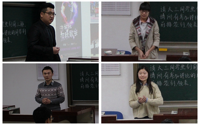 经过认真的工作总结与反思,法学院本科生各学生组织为大家呈现了一个学期以来负责的主要工作,以及学生干部们的成长历程。通过简洁精炼的ppt展示,分别涵盖了组织结构、日常事务及承办活动等多项内容,并配以生动的图片。短短的5分钟汇报时间,评委们看到了所有学生干部为同学们策划的丰富多彩的文体活动、营造的积极向上、青春洋溢的氛围和不断完善的组织结构。