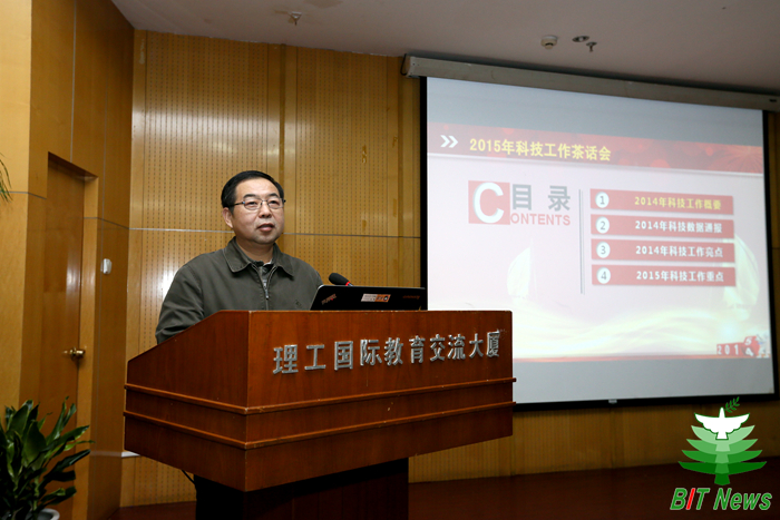 首先,杨树兴副校长通过翔实的数据,分析和总结了学校2014年的科技工作,在充分肯定学校科技工作2014年取得的重要业绩和亮点的同时,指出了学校科技工作在新形势下所面临的问题与不足,并提出了2015年学校科技工作的指导思想和工作要点。