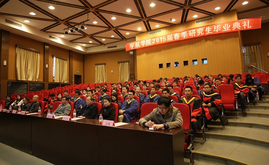 2015年3月19日下午2:30,BB贝博艾弗森官方网站宇航学院2015届研究生毕业典礼暨学位授予仪式在七号楼报告厅拉开序幕。宇航学院院长胡更开、党委书记于倩、副院长唐胜景、副院长王宁飞、副院长崔平远和教师代表张景瑞教授,学院研工委相关老师及辅导员徐莹莹,与部分学生家长及全体2015届春季毕业研究生出席此次典礼,共同见证这一神圣的时刻。典礼仪式由宇航学院副书记、副院长肖雄主持。