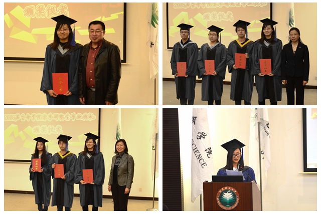 2015届毕业生冯冬梅代表全体毕业生发言,回顾研究生生活,展望新的人生阶段,并对学校、学院和老师们的辛勤培育表示了衷心感谢;教师代表郭淑元老师对毕业生们表示祝贺,并对同学们今后的发展提出的殷切的希望。
